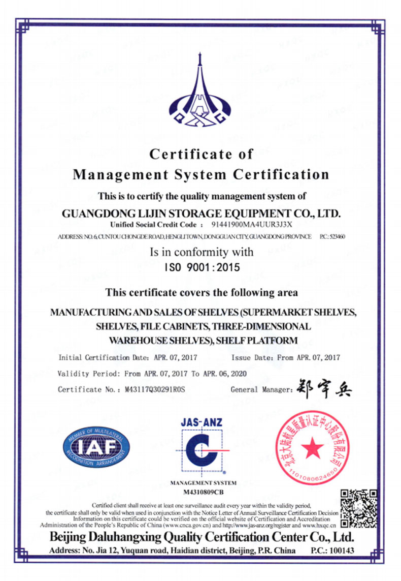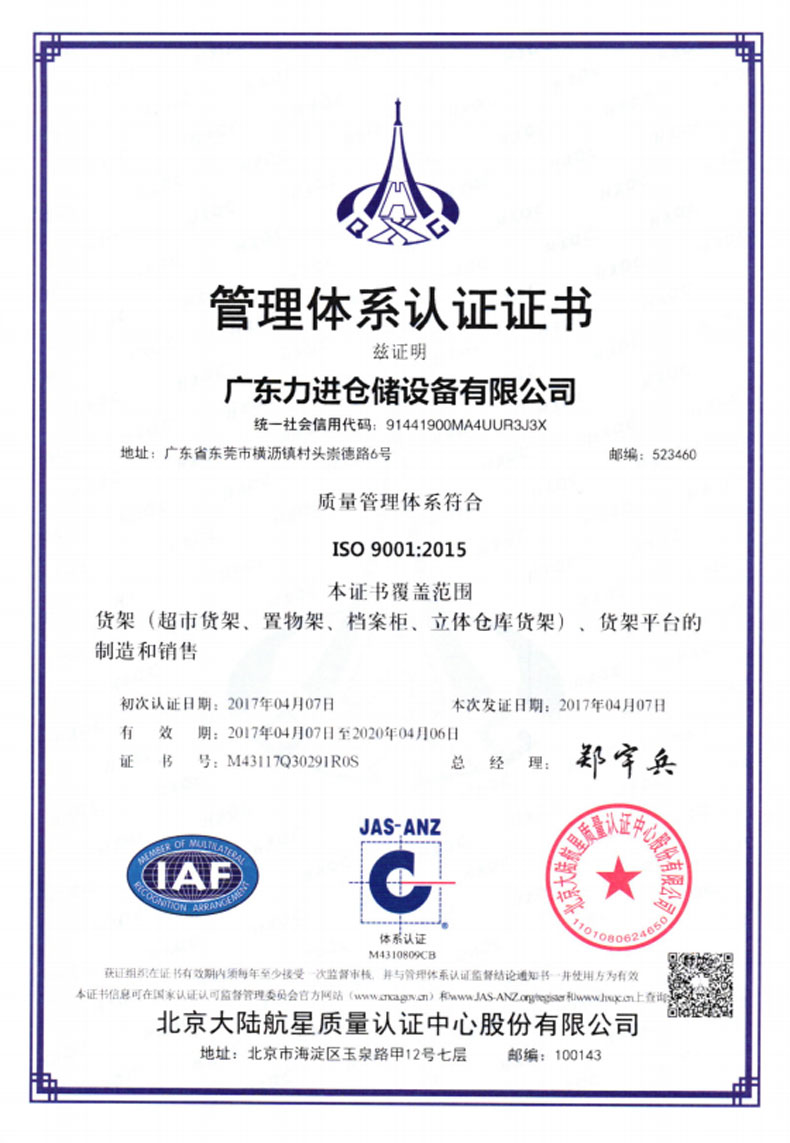 ?2016年5月 更名為廣東力進(jìn)倉儲設(shè)備有限規(guī)公司,搬遷至東莞市橫瀝鎮(zhèn)村頭工業(yè)區(qū),占地面積12800平方米。